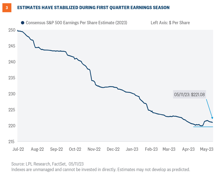 These positive surprises contributed to an increase in the consensus 2023 earnings estimate during earnings season, offering a sign of stability that should cause some of the earnings bears—and there are many—to rein in some of their pessimism (Figure 3).