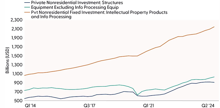 • If the job market cools, consumer spending will likely moderate in 2025, while pent-up demand for capital investment could provide support.
